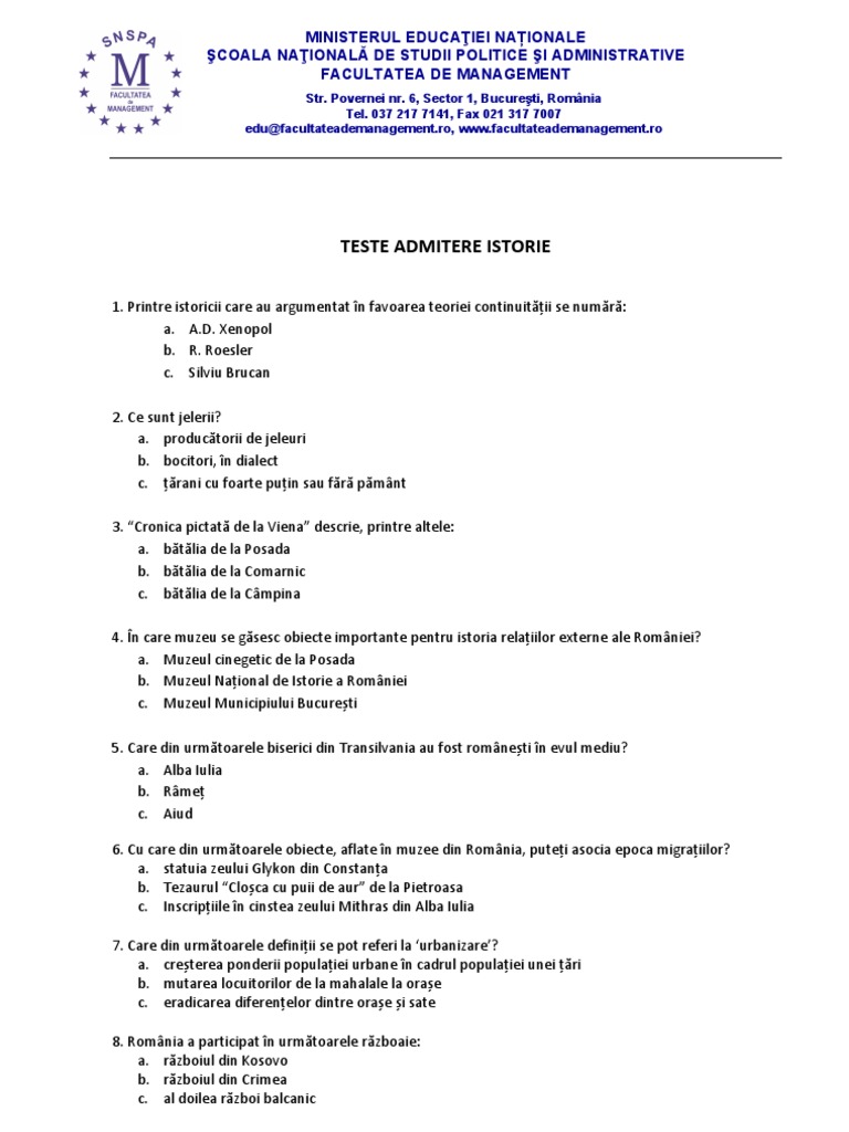Universitatea politehnica din bucuresti este una din cele mai mari universitati din se europei si cea mai mare scoala de ingineri din romania. Subiecte admitere facultatea de istorie bucuresti. Admitere licenta, admitere masterat, admitere doctorat.